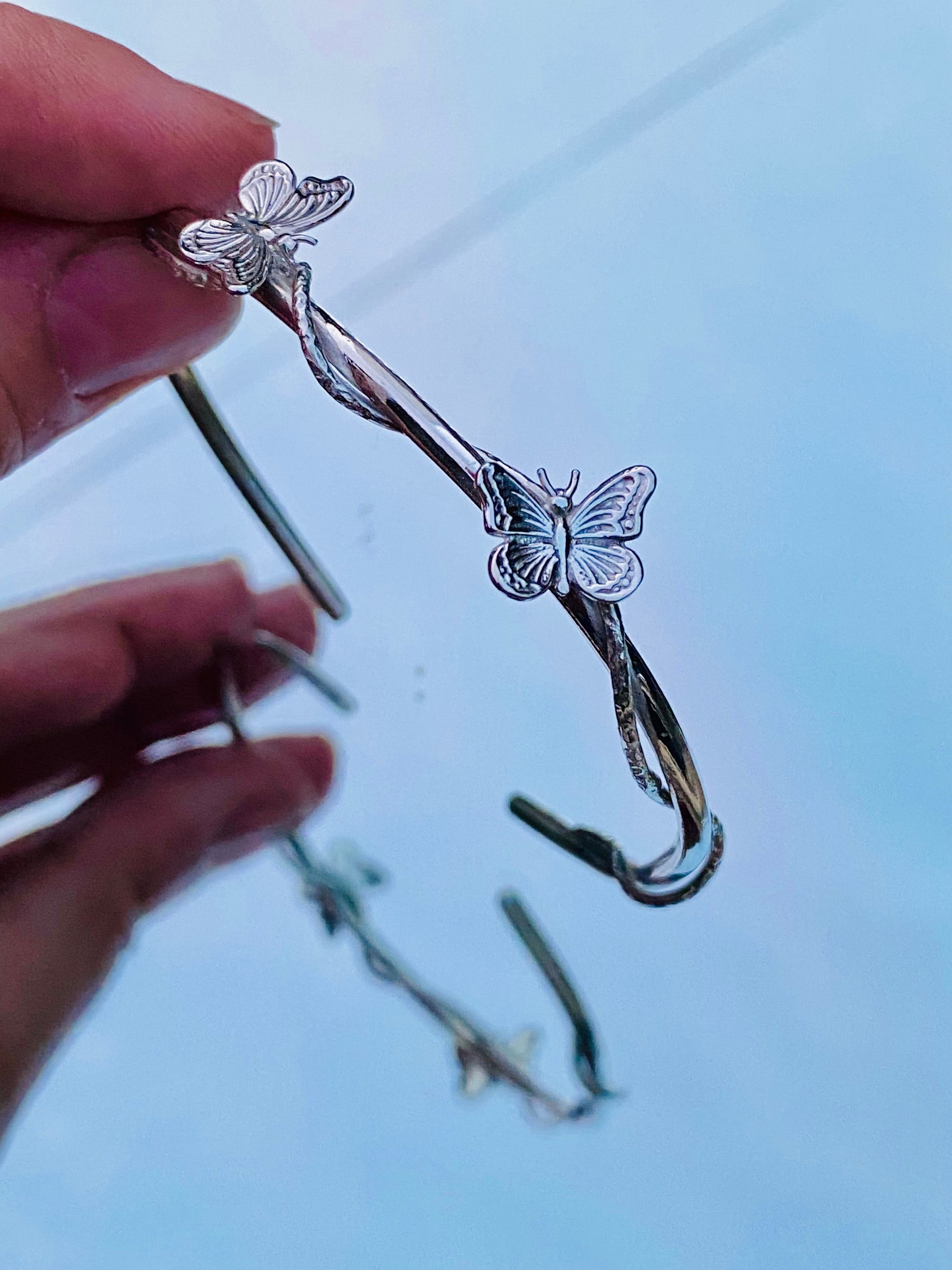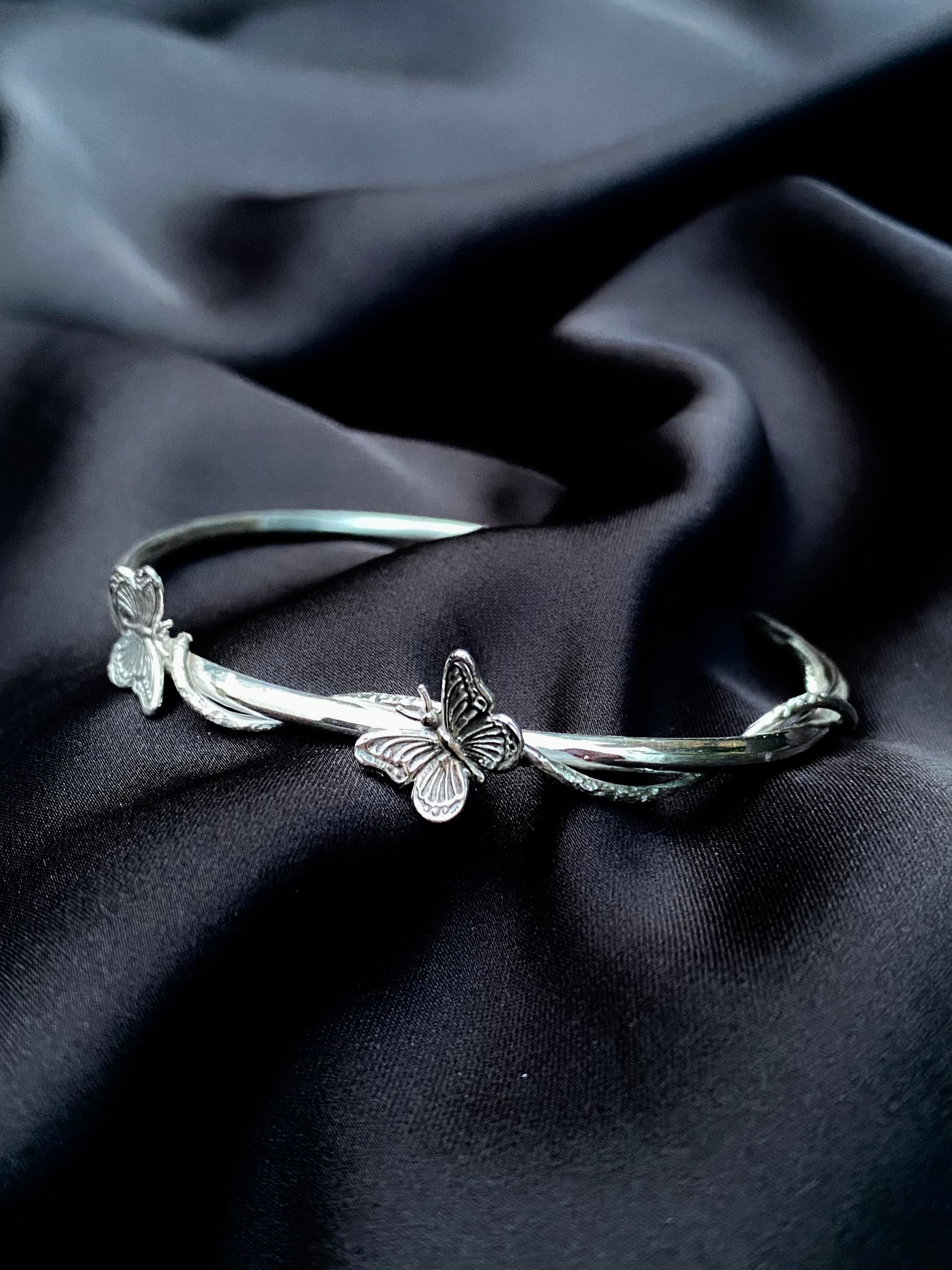 Fluturii fin gravați simbolizează transformarea, renașterea și curajul de a te înălța — chiar și atunci când porți rădăcini adânci.