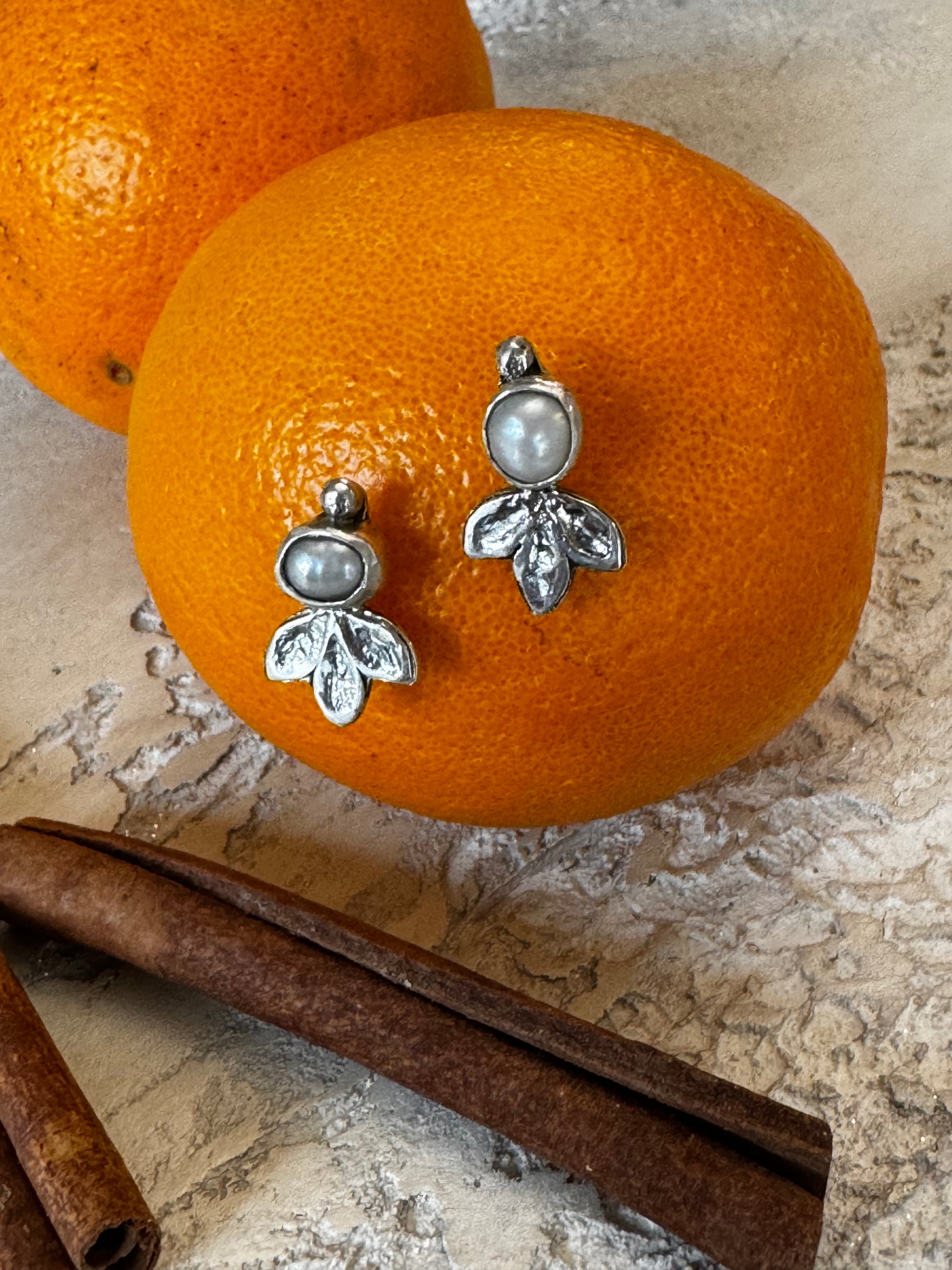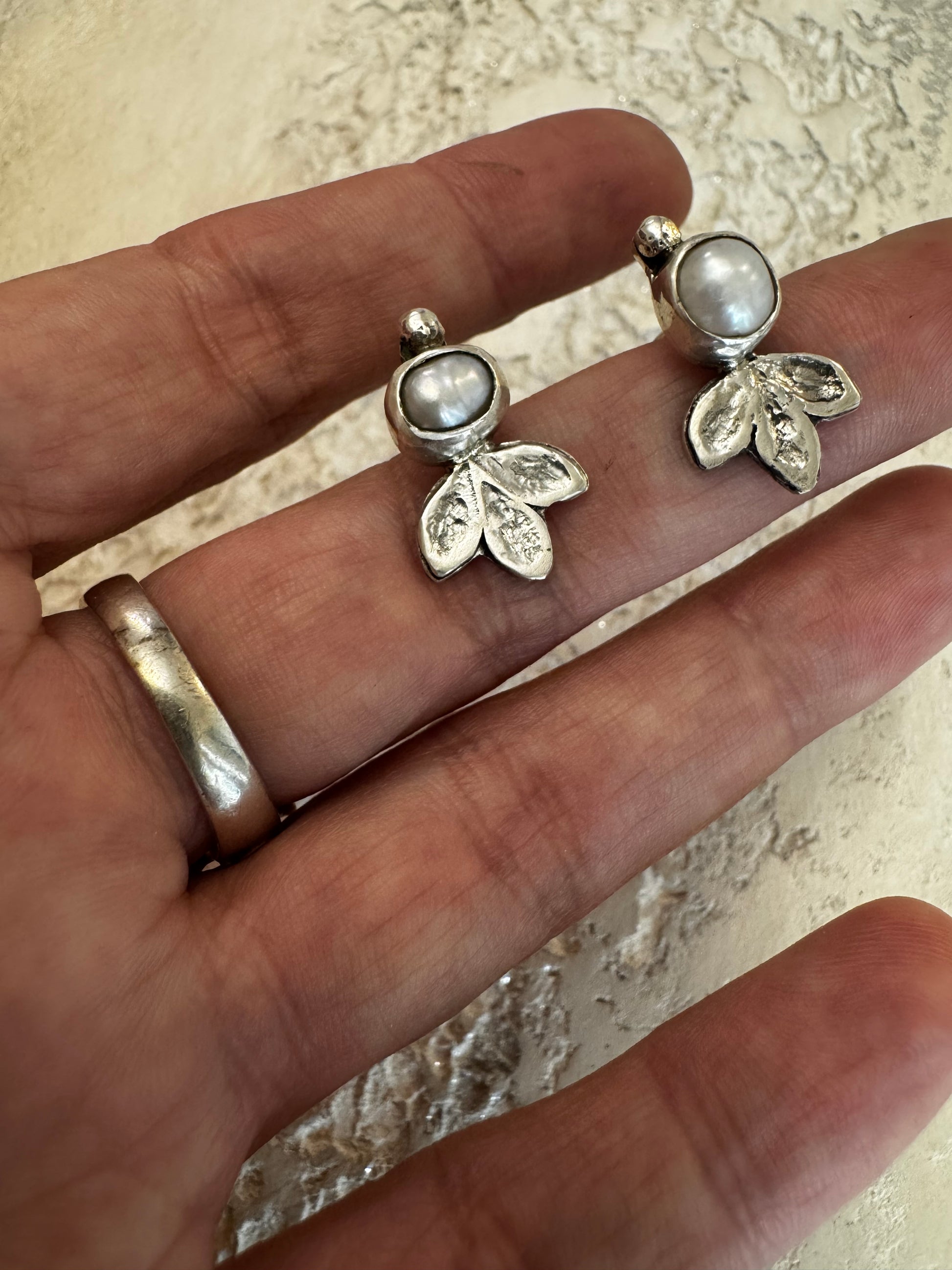 O pereche de cercei mici, dar cu o prezență caldă și blândă. Forma florală, modelată manual în argint, înconjoară cu grijă o perlă naturală – simbol al feminității, înțelepciunii și echilibrului interior. Acești cercei evocă energia unei dimineți liniștite, când lumina răsare printre petalele încă adormite. Sunt potriviți pentru femeia care își păstrează grația chiar și în cele mai simple gesturi.