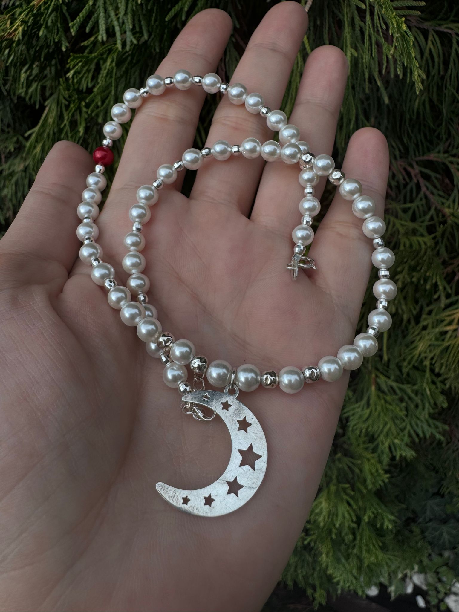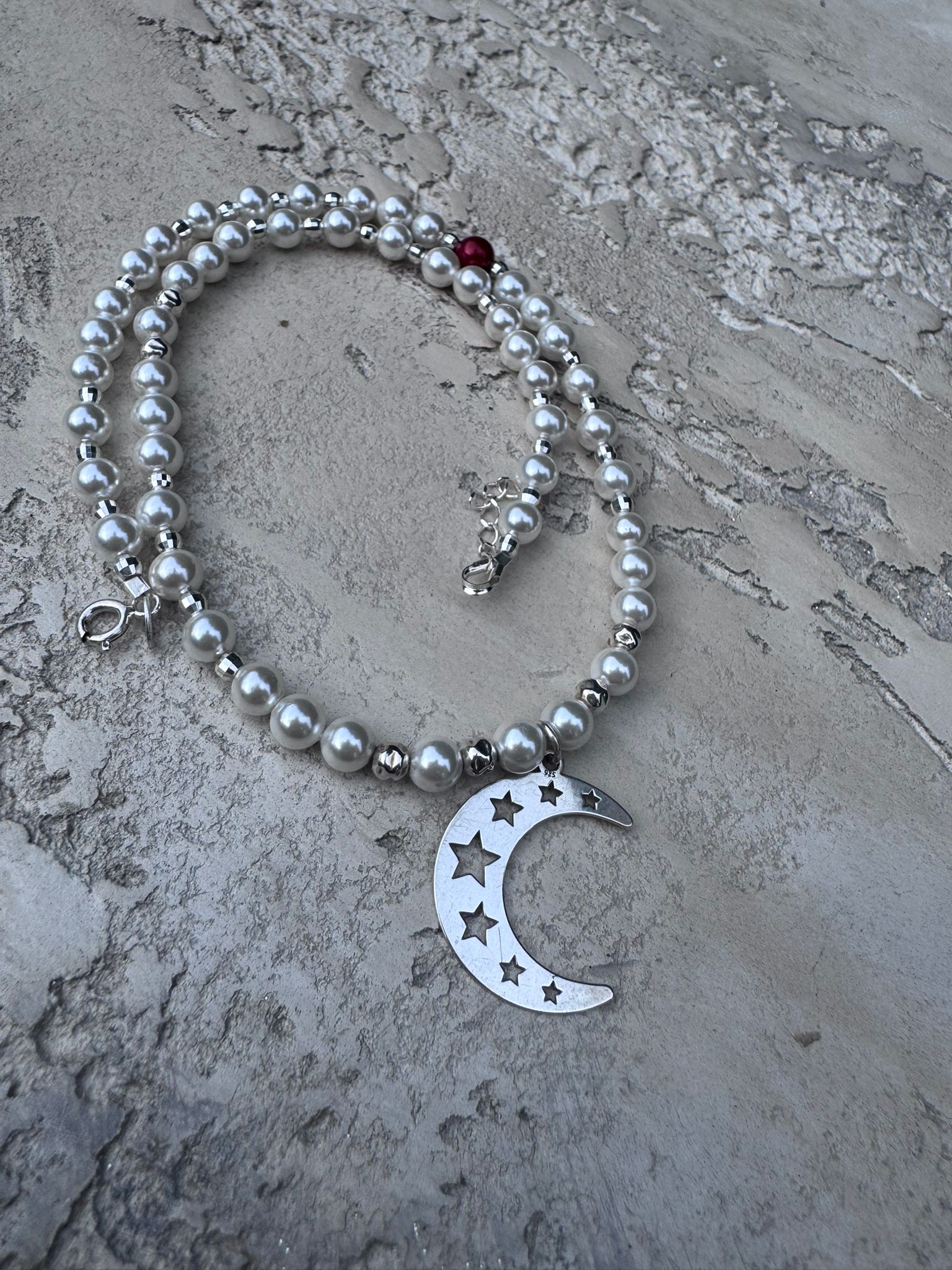 Colier perle & argint – „Luna și Stelele"
