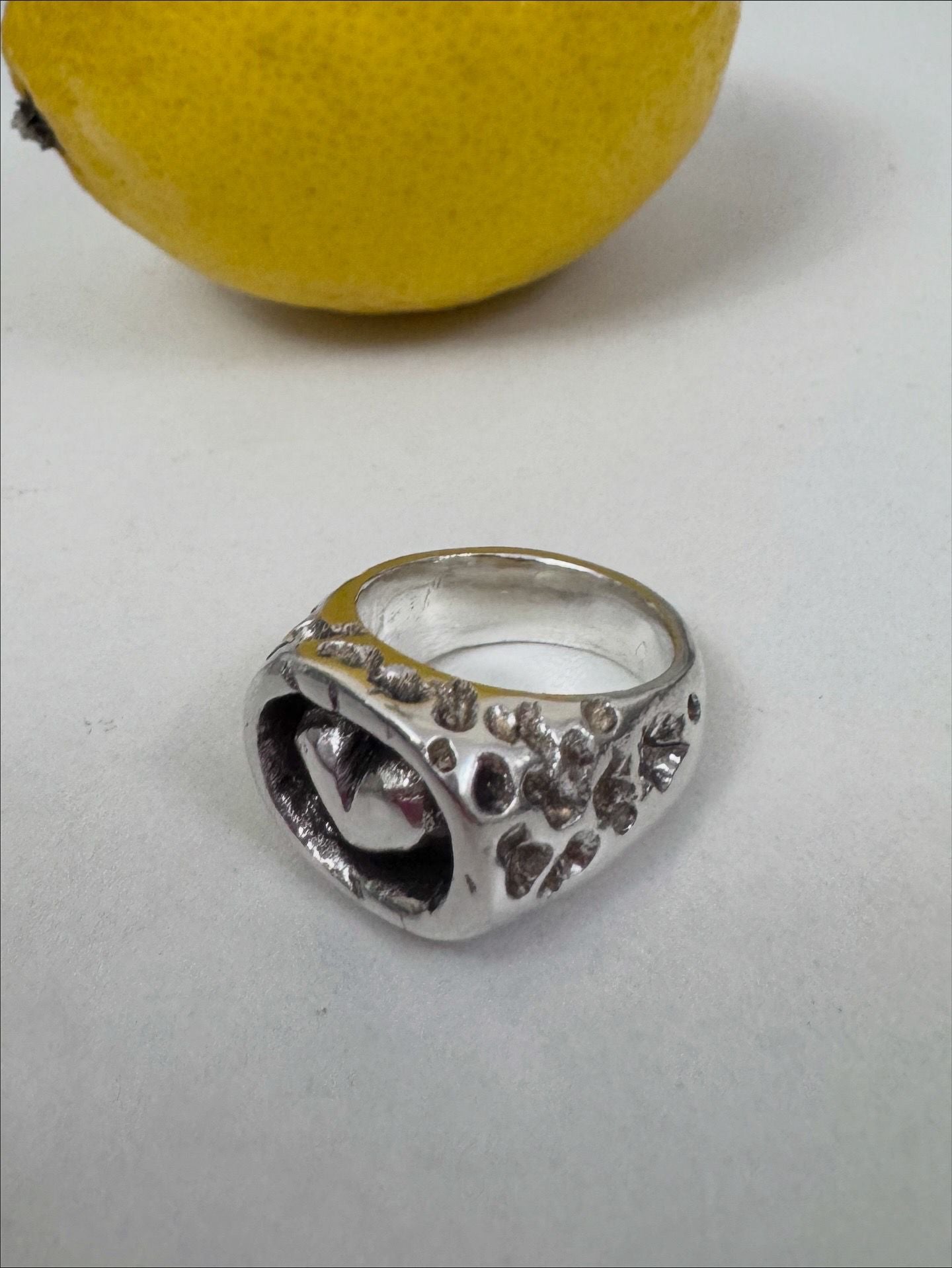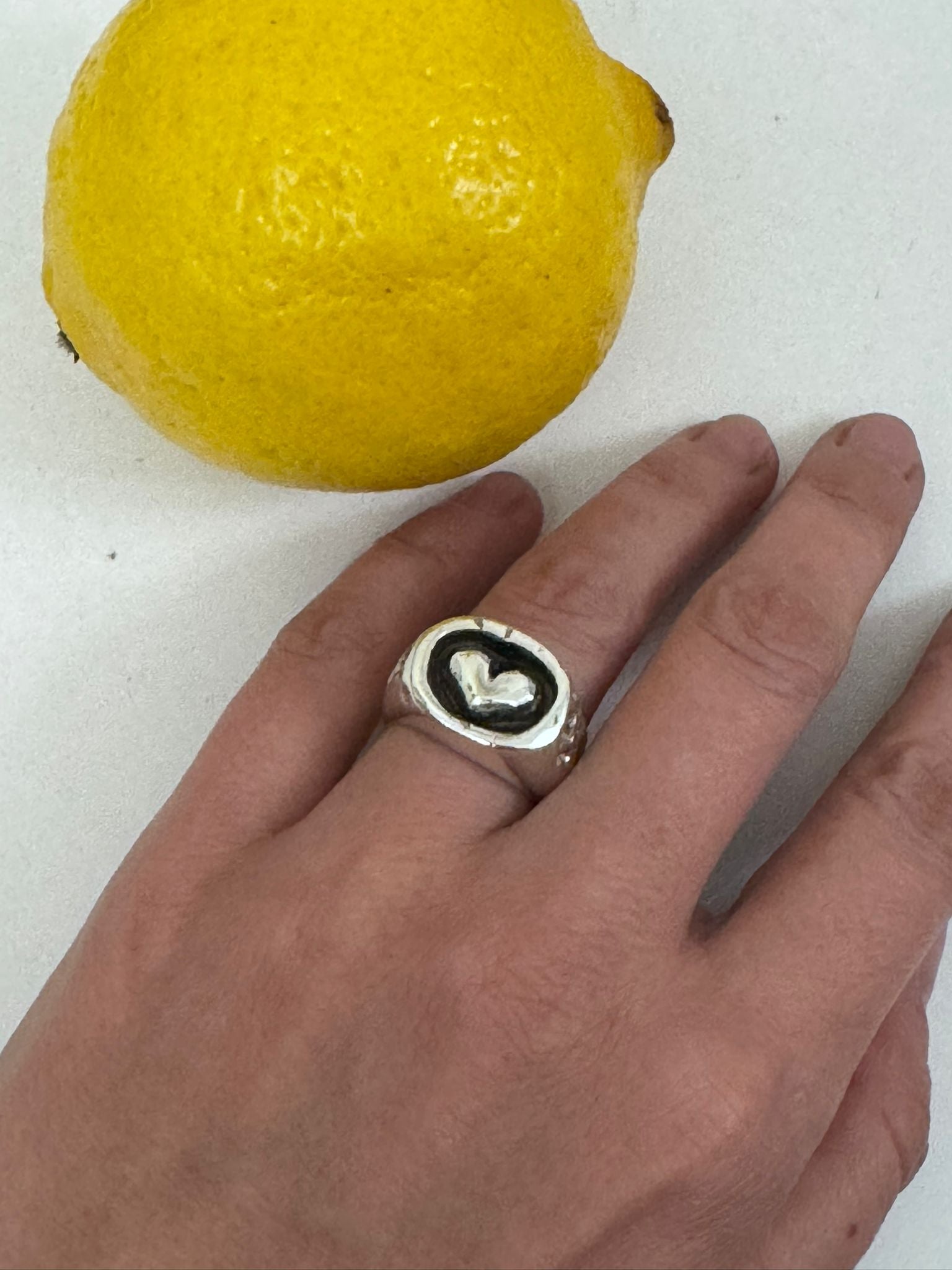 Inel signet masiv din argint 925 sculptat – „Inima Forjată”